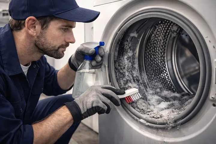 Over time, the rubber gasket on front-loading washing machines traps moisture, detergent residue, lint, and dirt—creating the perfect environment for mold, mildew, and unpleasant odors. Our professional washer rubber gasket cleaning service targets these hidden problem areas to restore cleanliness and freshness. We carefully open and clean inside the folds of the rubber seal, removing built-up grime and mold using professional-grade cleaning solutions and detailing tools. This deep cleaning helps eliminate odors, improves hygiene, and extends the life of your washer. Benefits include: Removes mold, mildew, and bacteria Eliminates musty washer smells Improves laundry freshness Helps protect the washer’s rubber seal from premature wear Ideal for homes with front-load washers or anyone noticing black residue, odors, or buildup around the door seal.